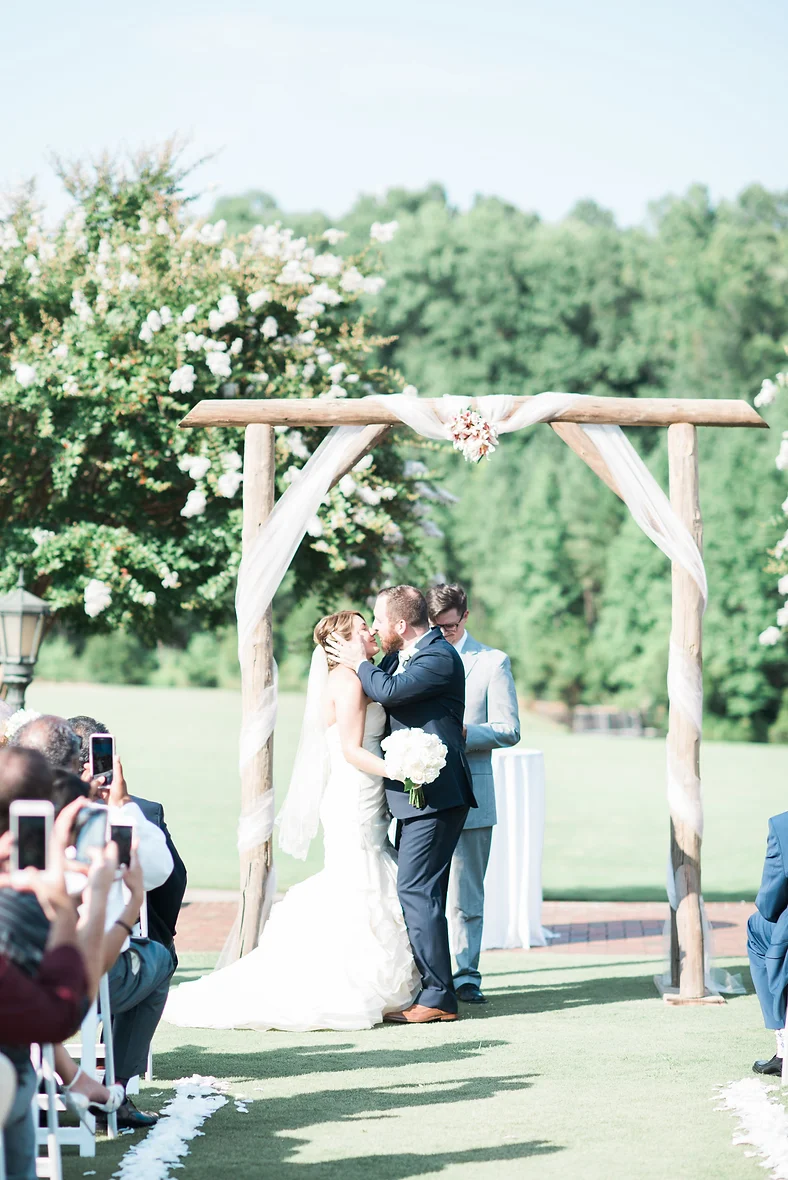 Elizabeth and Luke’s wedding day was such a lovely one! They tied the knot at The Grandover Resort in Greensboro on a beautiful summer day. There were birds chirping and sun shining and happy tears all around. Elizabeth’s dress was stunning and all of her details had sparkle and shine. There were even bubbles when they recessed down the aisle!